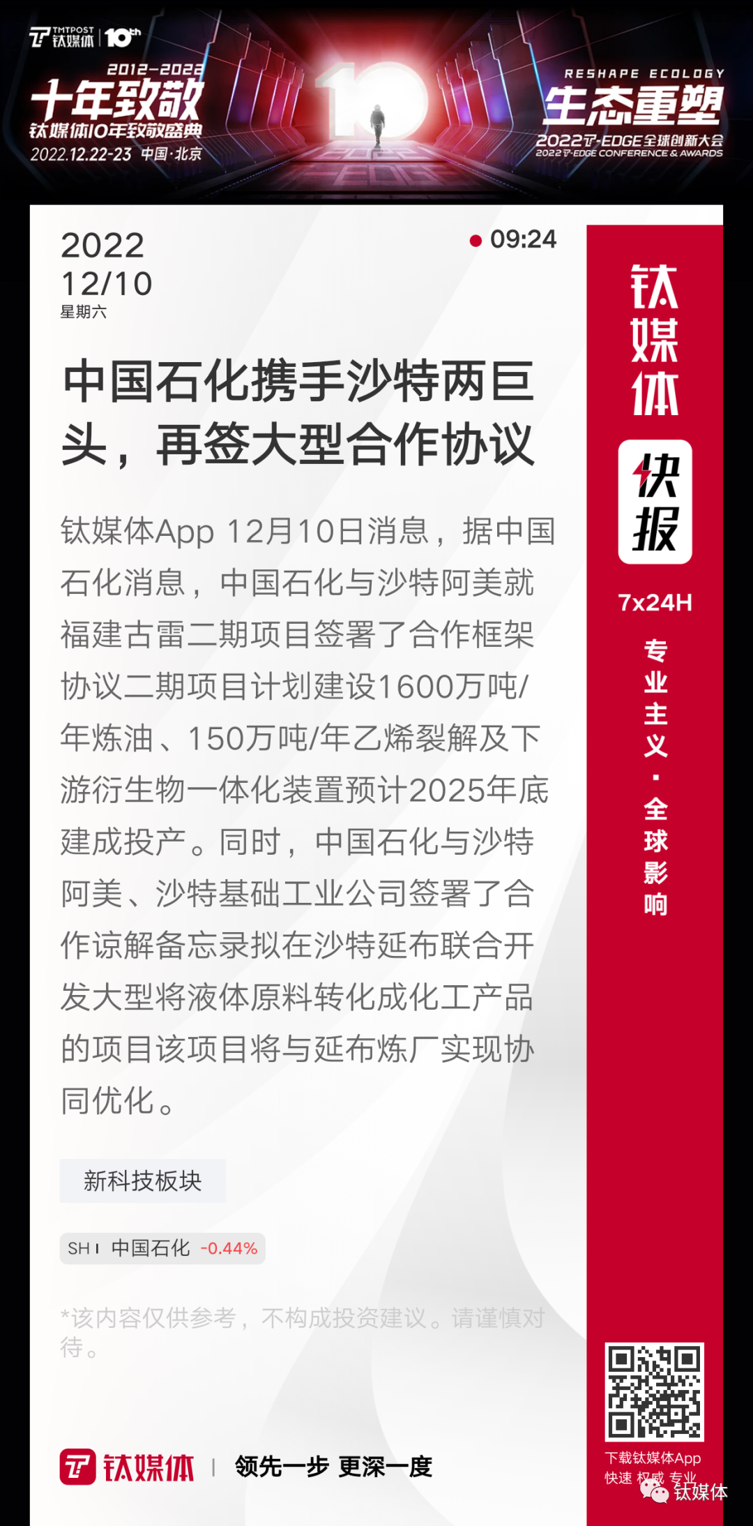 【中国石化携手沙特两巨头,再签大型合作协议】