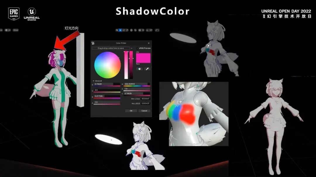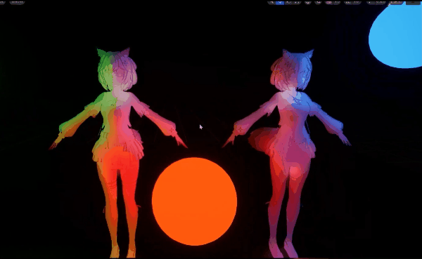 阴影颜色可以通过艺术家绘制贴图来控制,也可以指认一个颜色常量来控制整个材质的阴影颜色。可以看一下动态的效果: