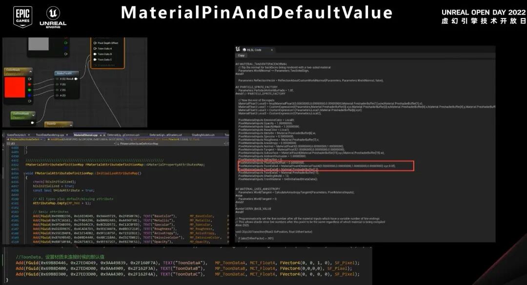 完成了shadingmodel的拓展以后,我们需要拓展一些MaterialPin,这样才能将材质中的一些数据传到我们的渲染管线中。同时,我们需要给这些Pin一些默认值,例如图中这个pin默认值就是0.5,所以我们也需要给我们的MaterialPin一个合理的默认值。