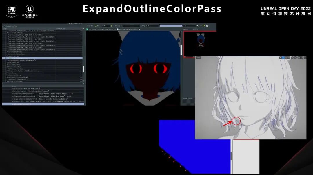 解决线条生成以及粗细控制以后,我们还需要对线条进行上色,我们可以渲染一个outlinecolor render target对画面区域进行染色,还需要对outlinecolor render target的颜色进行外扩,以保证最边缘的线条是被染了色的。当然,也可以使用贴图来控制某个区域线条的颜色,对这个材质指认一个颜色进行染色。