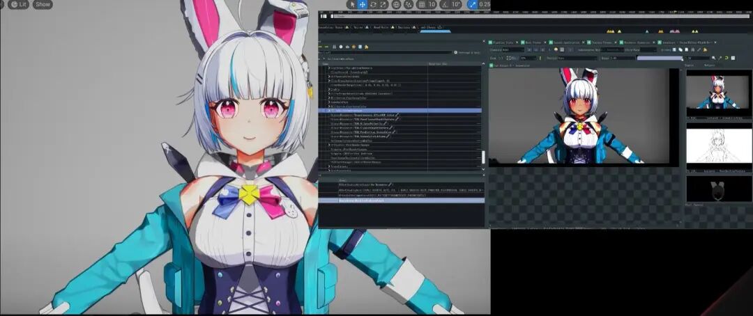 完成了渲染以后,我们还需要让我们的人物动起来,于是我们来到了动画部分。这部分我基本上没有对UE进行改造,使用的大部分都是UE自带的Sequencer、动画蓝图来计算人物裙子的动态效果。