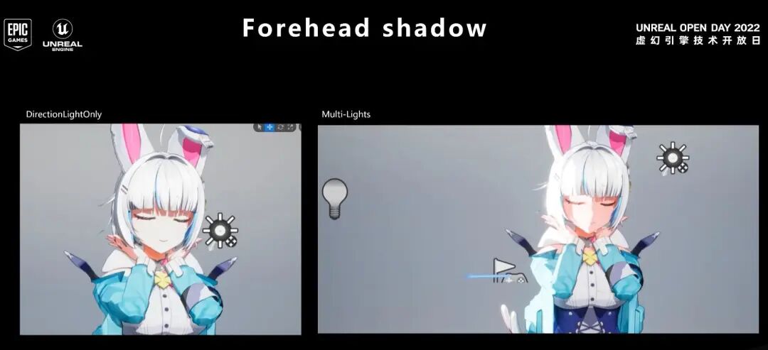 这里可以看到写实多光源阴影和我的卡通阴影对比的区别。