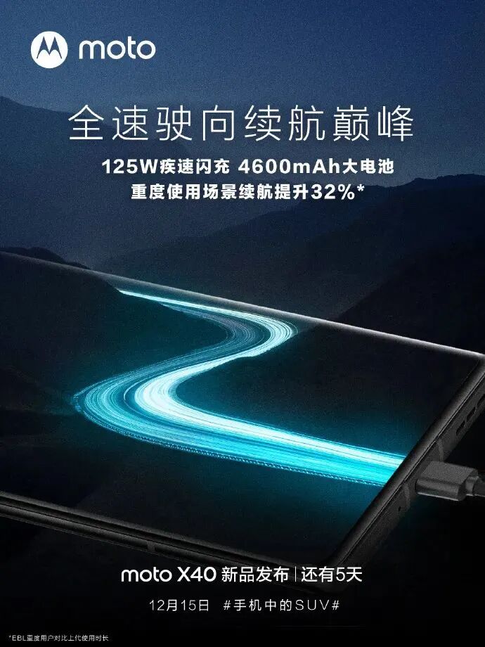 今日,moto官方继续预热新机moto X40,称全系标配了IP68防尘防水。联想中国区手机业务部总经理陈劲此前还表示,拥有IP68的moto X40就像是手机中的“SUV”,不论是下雨天还是大汗淋漓的情况,都能从容应对。为了展示新机出色的防水性能,陈劲还专门亲自进行了一场潜水测试,moto X40在水下依然可以正常开机使用。此前,moto官方还公布了moto X40的电量快充规格。据官方介绍,moto X40支持125W疾速闪充,内置4600mAh电池,重度使用场景续航提升32%。处理器方面,moto X40确定搭载第二代骁龙8移动平台,号称“重塑能效调校巅峰”。联想中国区手机业务部总经理陈劲此前曾公布了该机的安兔兔跑分为1312901分。此外,官方还宣布了moto X40将搭载独立研发系统调度引擎——MAXE。从一同公布的海报可以看出,MAXE调度引擎可以降低手机运行功耗,其中视频类与阅读类功耗最高可降31%,导航类功耗最高可降22%。MAXE调度引擎同时还能协助大型游戏,能耗比最高提升6.4%,时延最高降低17%。影像方面,moto X40保留了moto X30 Pro上的智能超解析模式,并针对风光拍摄场景,带来山海原画智能影像,并且moto X30 Pro 上的高定人像三焦段、自动模式5000万直出的智能高清功能也会保留并继续优化。另据入网信息显示,moto X40的机身尺寸为161.3×73.9×8.5mm ,重196克,正面配备了一块6.67英寸OLED曲面屏幕,拥有1080×2400分辨率,支持10bit色深与屏下指纹识别。该机后置50MP+50MP+12MP三摄组合,预计分别为主摄、超广角与人像镜头,支持 4 倍光学变焦。鉴于此前发布的上一代产品moto edge X30一经发布就刷新了骁龙8旗舰的最低价格,新机能否继续刷新骁龙8Gen2旗舰手机的低价记录,此次moto对于新机的定价值得期待。