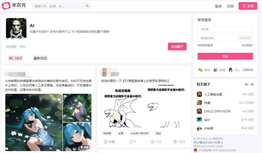 而GameLook注意到,国内的同人社区半次元也已经有AI、AI插画等相关标签的圈子,同时已经有不少用户上传自己的AI插画作品。