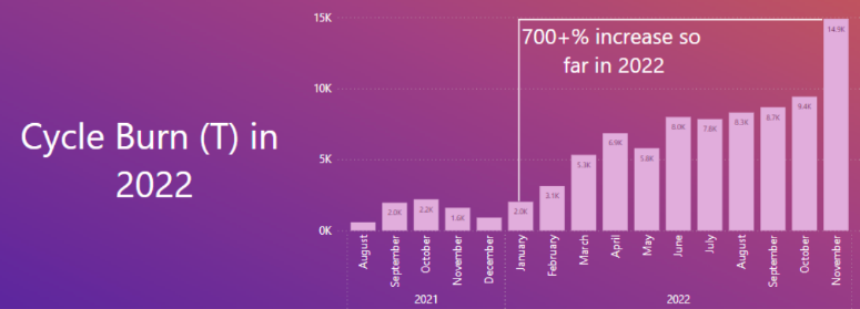 ICP 通证通胀是由于 ICP 的铸造以奖励节点提供者和奖励 NNS 治理参与者而引起的,从 2022 年 1 月到 2022 年 11 月,ICP 的年化通货膨胀率为 3.7%,远低于治理奖励年化 8-9% 的目标通货膨胀率。许多 NNS 参与者一直在将他们的奖励累积为“成熟度”(即,通过对提案进行投票而在神经元中累积奖励),而不是将它们转换为 ICP 代币。ICP 的通货膨胀率可能每个月都不同,这主要取决于 NNS 参与者是否将到期日转换为 ICP,下图显示了 2022 年迄今为止每个月的年化通货膨胀率。请注意,8 月份较大的通货膨胀率主要是由于 DFINITY 基金会“合并”了其部分累积成熟度,这具有铸造神经元成熟度和将铸造的数量添加回神经元的质押中。![]()