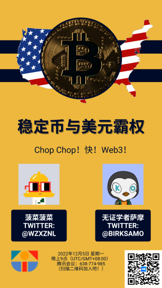 Chop!Chop第三期来袭!邀请到了菠菜老师和萨摩老师为大家分享稳定币与美元霸权!