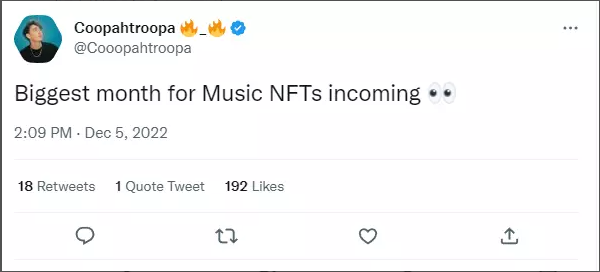 Cooper本周语录是:迎接音乐NFT史上最火的月份吧!(他应该是指着12月说的)。