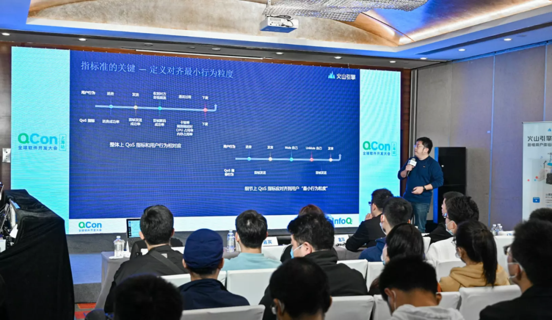 衡量用户体验不是一件容易的事,至今业内也未形成统一的标准。专场的第二部分是关于数据驱动的 RTC 体验优化,第一件事就是介绍如何把 QoS 指标定义准确,让它能够真实地反映用户体验。火山引擎在定义 QoS 指标时做了三个“对齐”——对齐最小用户行为粒度、对齐最小用户感受的阈值、以及在计算时对齐用户行为和反馈,前两个对齐让 QoS 指标更严苛、灵敏,后者则可以消除幸存者偏差,让 QoS 指标尽可能的客观、透明,可验证性更强。