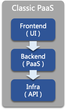 PaaS 后端通过编码对接底层 API,进行互联互通,屏蔽复杂性,提供面向用户的更高级别 API