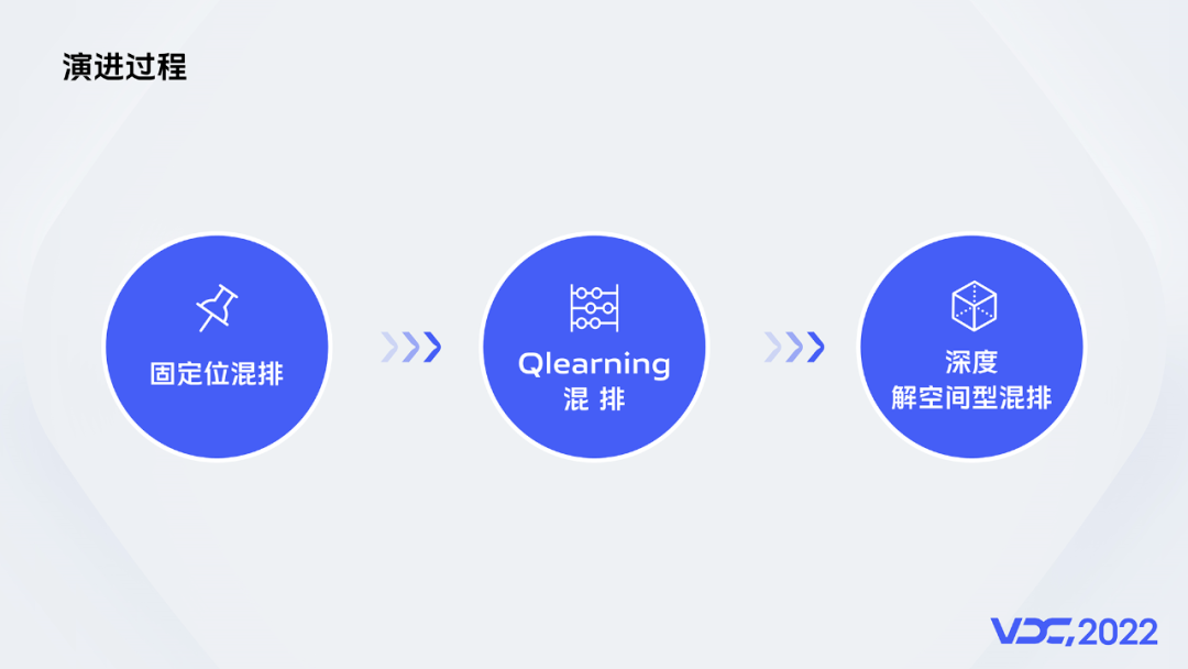 具体到 vivo 信息流场景的迭代,混排迭代包括固定位混排,Qlearning 混排和深度解空间型混排三个阶段。