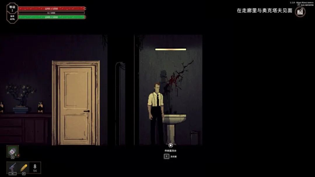 虽然游戏的设定十分猎奇,但在玩法的配合下,其设定的呈现方式就显得十分自洽。值得一提的是,为了完善血液的运用之法,当你在关卡中与怪物战斗并损失血量后,这些鲜血便或多或少会沾上衣服,你还可以通过住所中的洗手池清洗衣服,来获取些许血液。