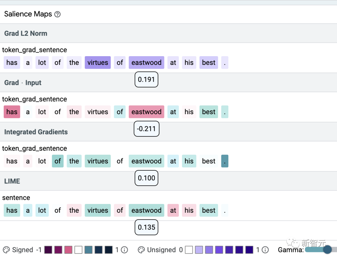 通过大量训练解决任务的现代机器学习模型,在测试集上进行评估时可以取得出色的性能。但有时它们做出了正确的预测,但使用的信息似乎与模型任务无关。原因之一在于训练模型的数据集包含与正确标签没有因果关系,但却是「可预测的伪影」。例如,在图像分类数据集中,水印可能表示某个特定类别。当所有狗的照片都碰巧是在室外拍摄的,背景都是绿草,因此绿色背景预示着狗的存在。模型很容易依赖这种虚假的相关性(捷径),而不是更复杂的特征。文本分类模型也可能倾向于学习捷径,比如过度依赖特定的单词、短语。自然语言推理任务中一个臭名昭著的例子是在预测矛盾时依赖否定词。论文链接:https://aclanthology.org/P19-1334/在构建模型时,其中重要的一步包括验证模型是否不依赖于此类捷径。而输入显著性方法(如 LIME 或 Integrated Gradients)是实现此目的的常用方法。在文本分类模型中,输入显著性方法为每个标记分配一个分数,其中分数越高表示对预测的贡献更大。然而,不同的方法会产生非常不同的得分排名。那么,应该使用哪一个来发现捷径呢?要回答这个问题, 我们提出了一个评估输入显著性方法的协议。核心理念是有意向训练数据引入无意义的捷径,并验证模型是否学会了应用它们,以便确定地了解标记的基本事实重要性。有了已知的真值(Ground Truth),我们就可以通过将已知重要的标记置于其排名顶部的一致性来评估任何显著性方法。使用开源学习可解释性工具 (LIT),我们证明了不同的显着性方法可以在情感分类示例中产生非常不同的显着性图。在上图的示例中,显著性分数显示在相应的标记下:颜色强度表示显着性;绿色和紫色代表正权重,红色代表负权重。相同的标记 (eastwood) 被分配了最高 (Grad L2 Norm)、最低 (Grad Input) 和中等 (Integrated Gradients, LIME) 重要性分数。在机器学习中,真值「ground truth」一词指的是训练集对监督学习技术的分类的准确性。这在统计模型中被用来证明或否定研究假设,ground truth 这个术语指的是为这个测试收集目标(可证明的)数据的过程。而我们方法的关键是建立一个可用于比较的ground truth。我们认为,路径的选择必须受到文本分类模型的已知信息的激励。例如,毒性检测器倾向于使用身份词作为毒性线索,自然语言推理 (NLI) 模型假设否定词表示矛盾,预测电影评论情绪的分类器可能会忽略文本而支持数字评级。文本模型中的捷径通常是词汇性的,可以包含多个标记,因此有必要测试显著性方法如何识别快捷方式中的所有标记。为了评估显著性方法,我们首先将现有数据引入有序匹配的捷径。为此,我们使用基于 BERT 的模型在斯坦福情感树库 (SST2) 上训练为情感分类器。我们在BERT的词汇表中引入了两个无意义标记,zeroa 和 onea,我们将它们随机插入到一部分训练数据中。每当文本中出现两个标记时,都会根据标记的顺序设置该文本的标签。
