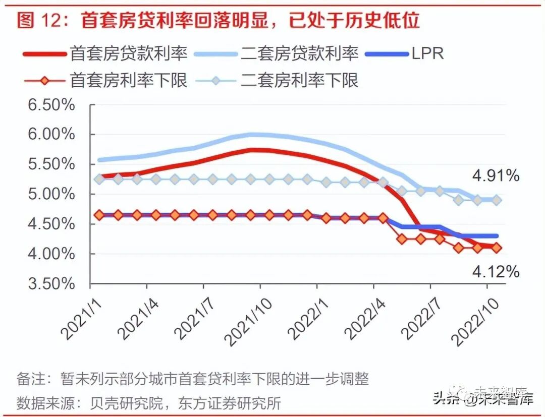我们在中期策略报告中对 2014-2015 年宽松周期和本轮政策放松的力度进行了对比。截至目前, 年内 5 年期 LPR 累计下调 35bp(2014-15 年六次降息累计达 165bp);贝壳研究院数据显示 10 月百城主流首套房贷利率为 4.12%,约为基准利率 9.5 折,同时部分二线城市及更多三四线城市 “认房认贷”调整有所放松(2014 年 9 月 30 日央行、银监会全国性放松“认房认贷”,并在实 操中下调首套房贷利率至贷款基准利率 8.5 折-9 折)。对比来看,本轮需求端政策较上一轮力度 有所克制,同时步幅收窄、周期拉长,意味着政策仍维持托底思维,不希望主要城市房价过快上 涨和居民增加过多的负债。