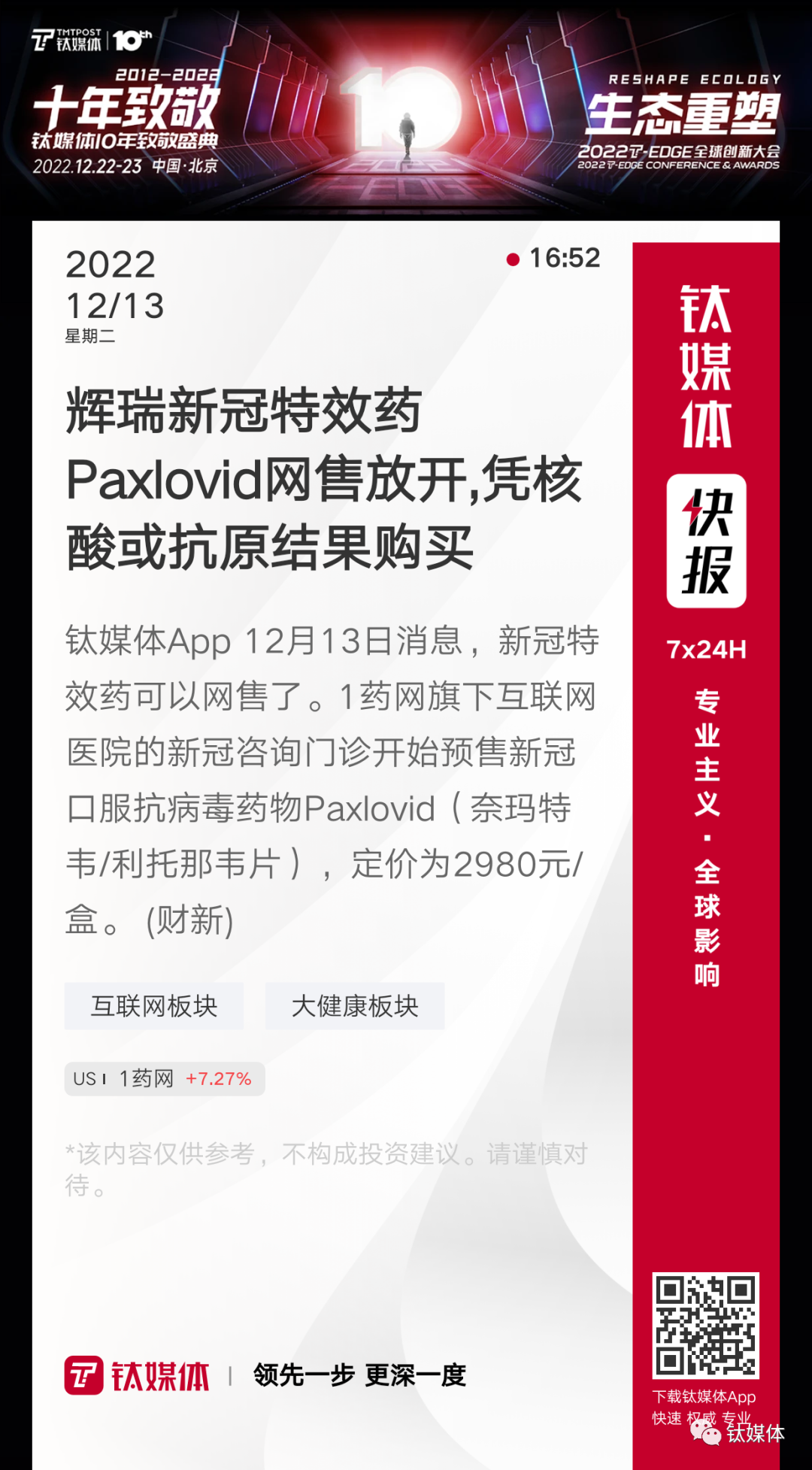 【辉瑞新冠特效药Paxlovid网售放开,凭核酸或抗原结果购买】