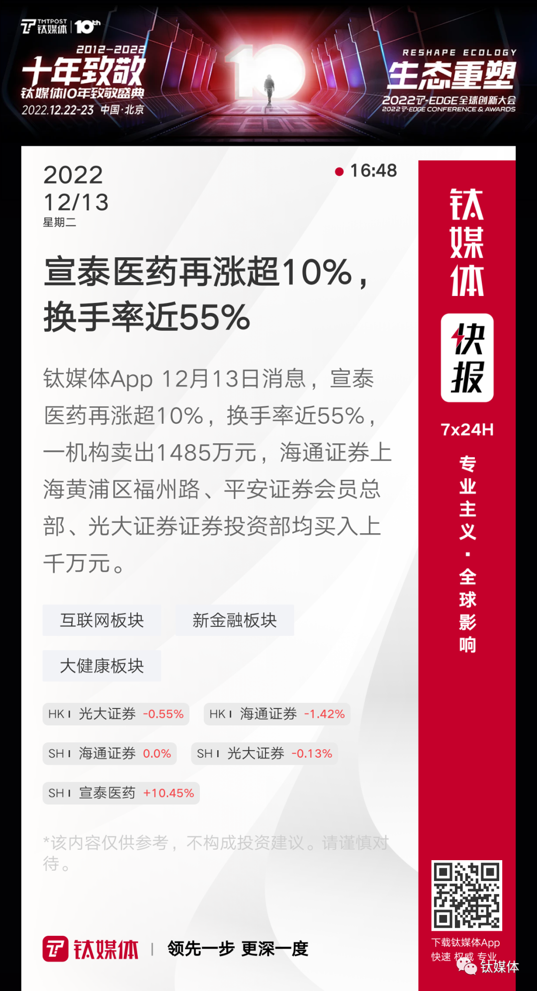 【宣泰医药再涨超10%,换手率近55%】