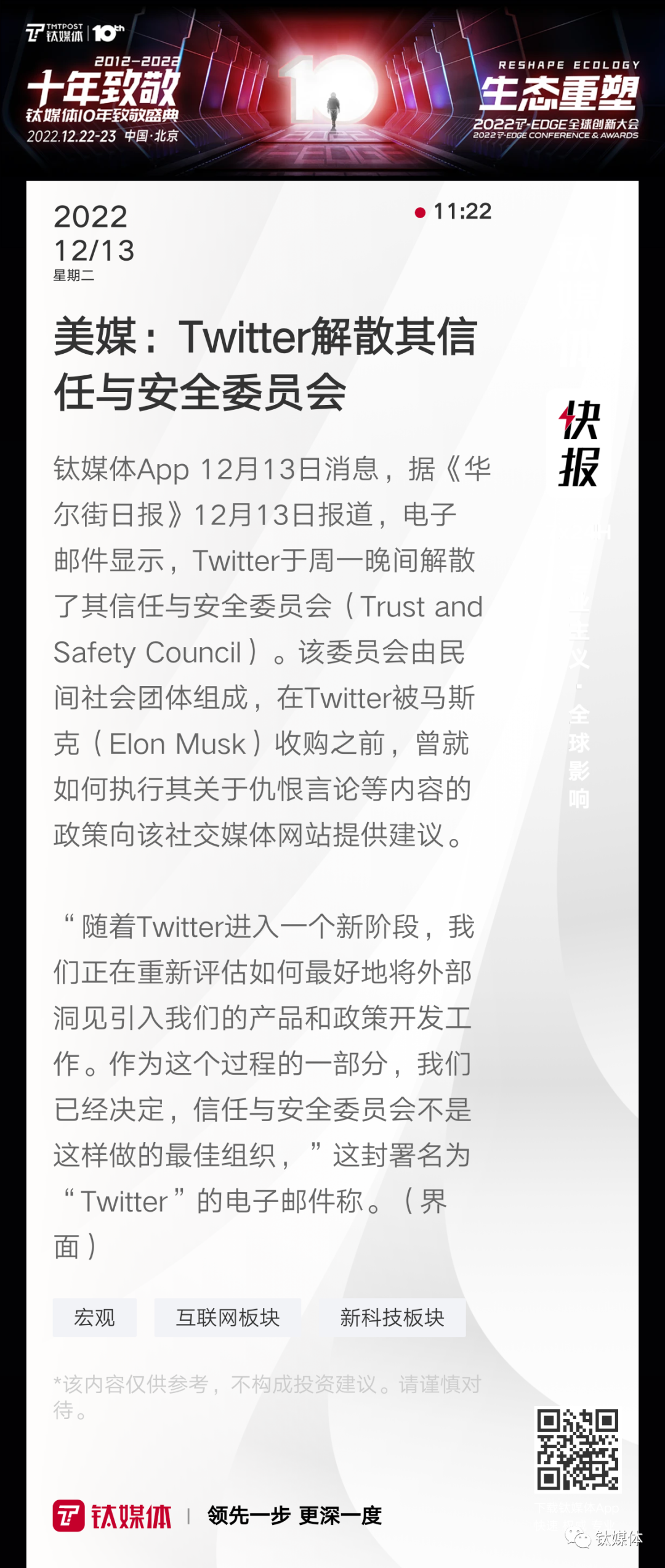 【美媒:Twitter解散其信任与安全委员会】