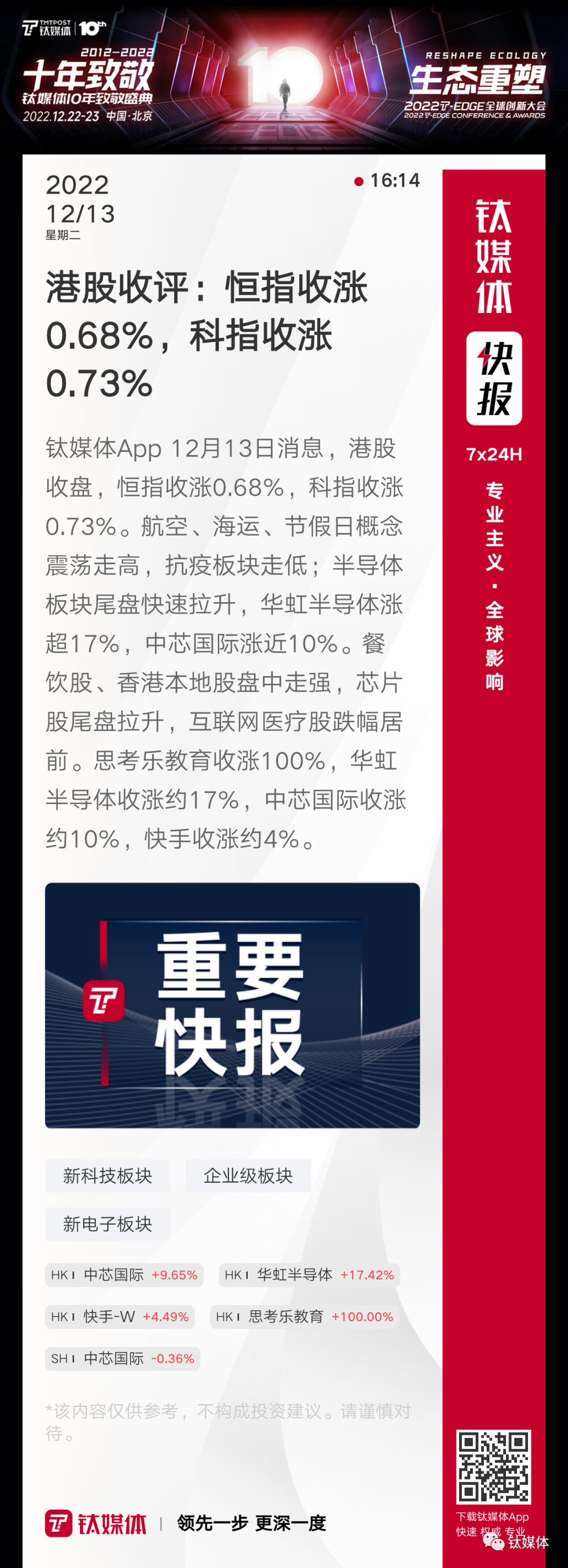 【港股收评:恒指收涨0.68%,科指收涨0.73%】
