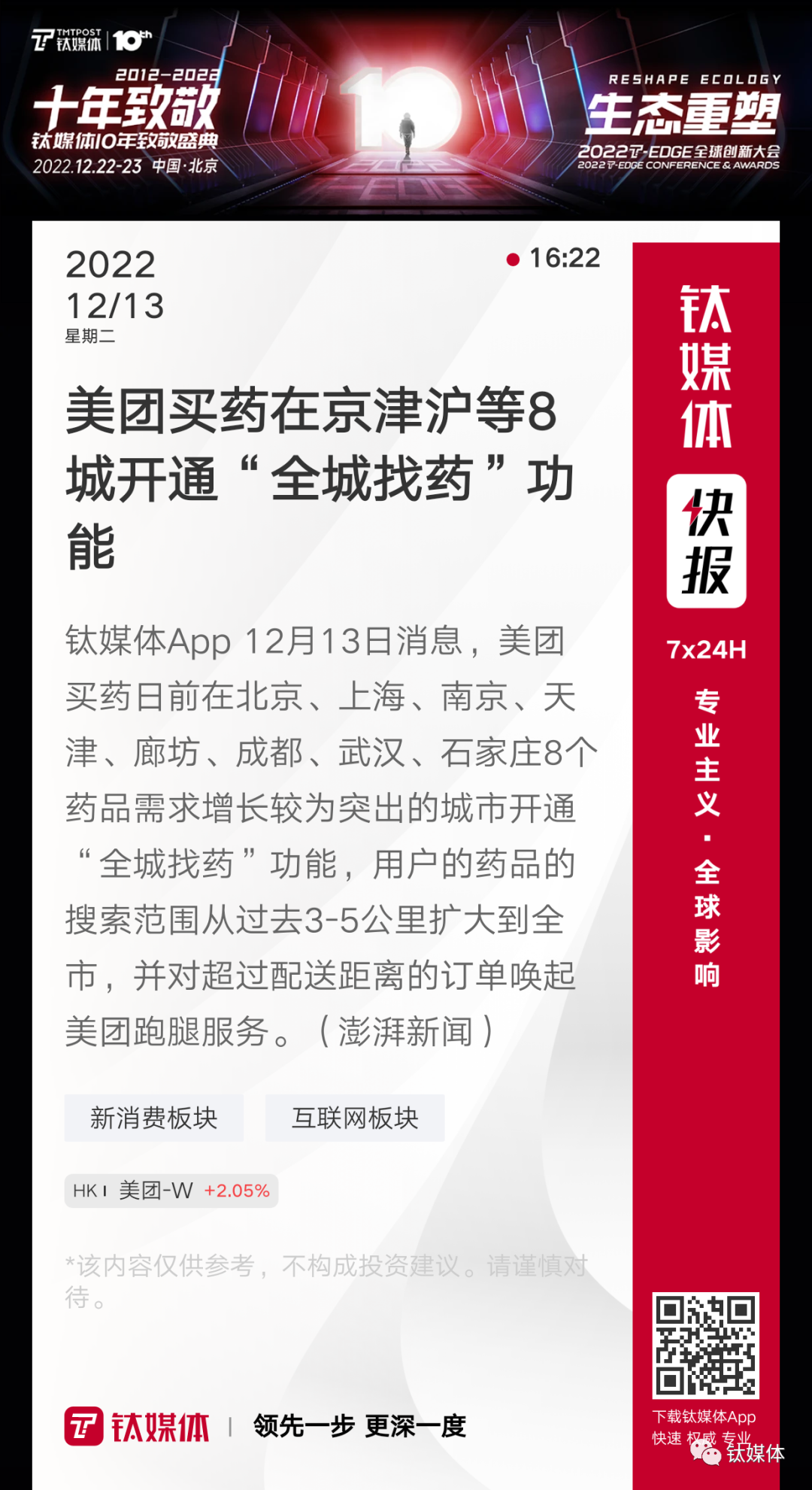 【美团买药在京津沪等8城开通“全城找药”功能】