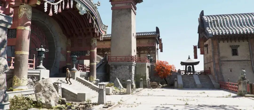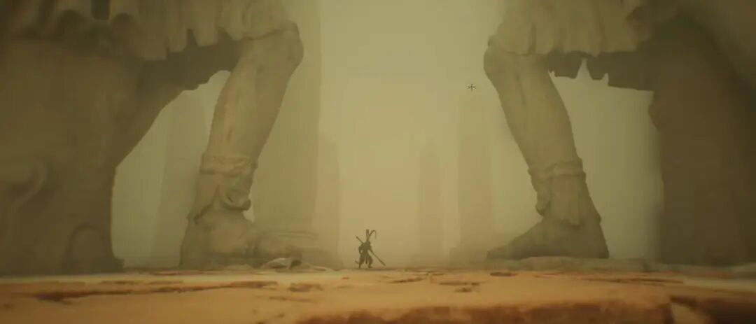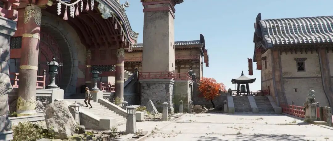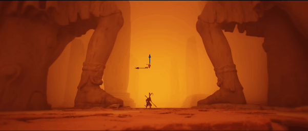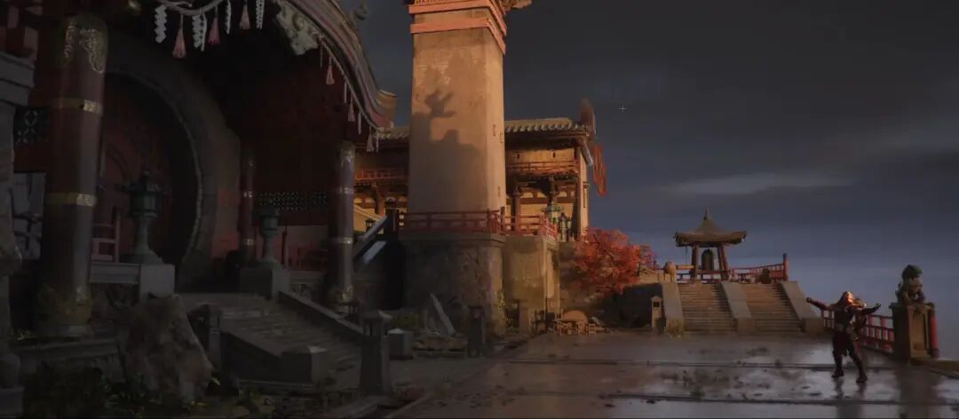 这个环境在以天空背景为测光基准的情况下,还欠曝了两级曝光,欠曝本身还可以让天空的色彩更加浓烈。另外,逆光也有利于表现角色的一些造型、体态,尤其是结构丰富姿态优美的时候。