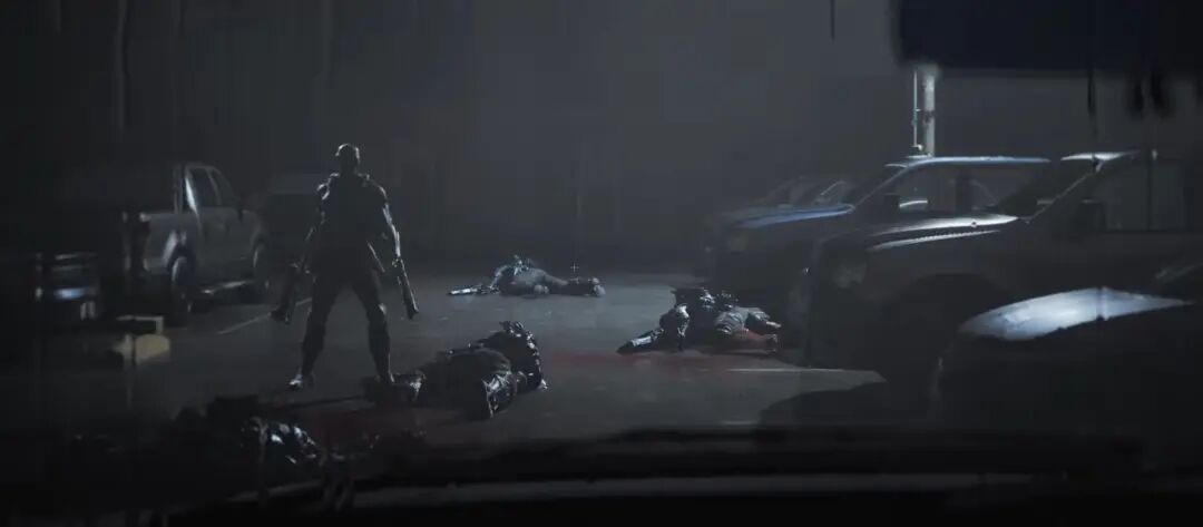 这个片子低调利于表现负面情绪,高对比也比较动态,因此气氛上有利于表现危险的暴力这种情节或气氛,比较符合这个图的内容。另外,这个环境中的各种因素都是利于表现低调高对比,比如说一个是晚上光线比较暗、又是大逆光,另外下雨比较潮湿,固有色比较暗,因此GI的反弹比较少。