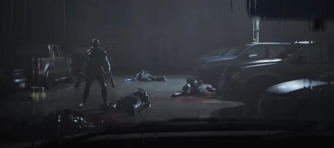 先来看两幅图,这一幅的灵感是来自于电影《边境杀手》的其中一个镜头,我尝试在UE里利用了现有的一些资源快速实现了一下。画面当中的元素,包括UE的天空大气系统、体积云系统,还有前景的一些《Paragon》的角色、一些造型。