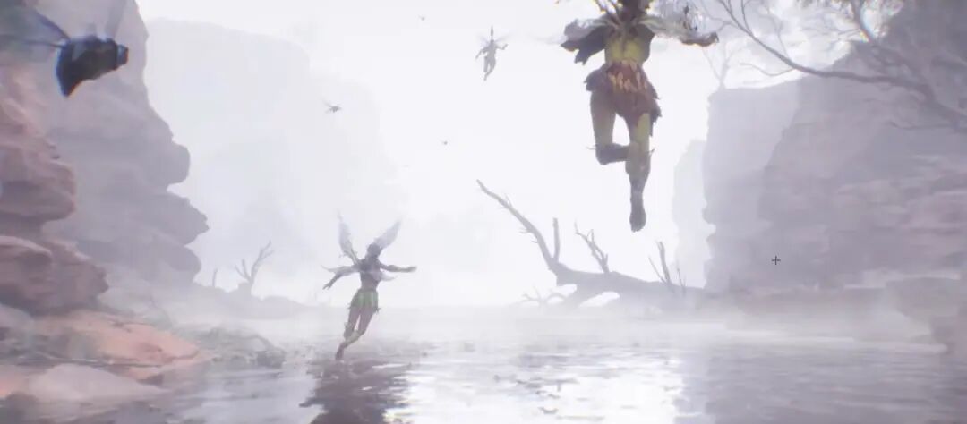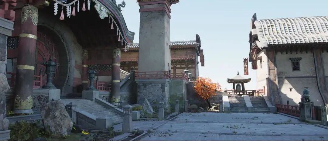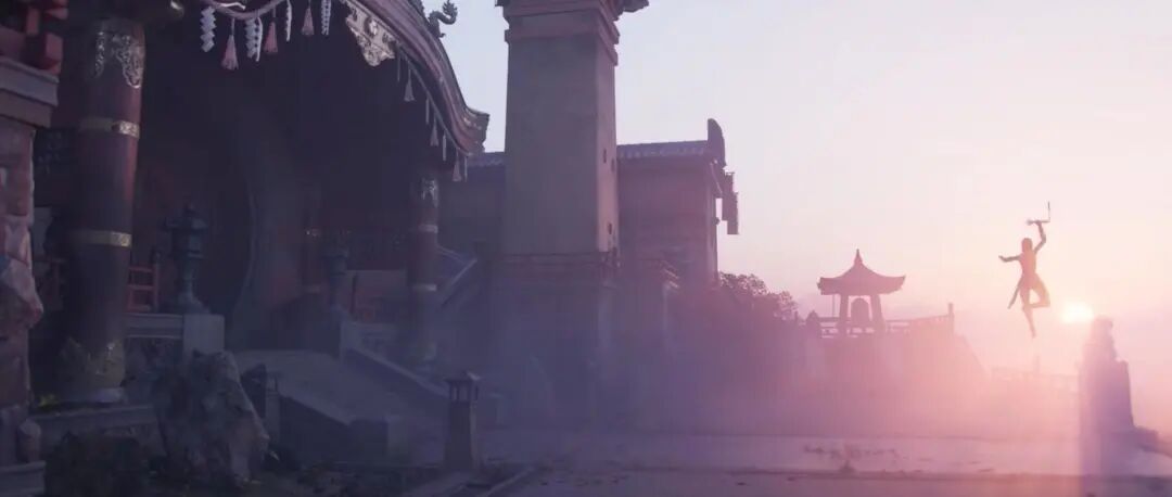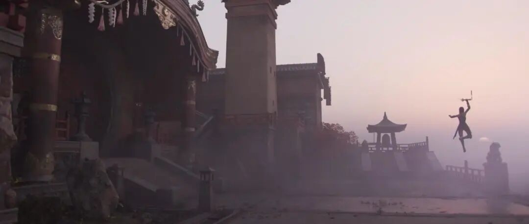 关于尘埃雾气对调子的影响,我这边再跟大家分享另外一个例子,这是一个中低对比的调子,气氛想表现一种神秘感、偏静,这里使用了大量的烟尘雾效来降低对比、表现气氛。这里我觉得可以分享几点,一个是体积雾,一旦雾气打开,体积雾选项以后,从摄像机到一定的距离,就用体积雾来渲染替代普通的雾气。
