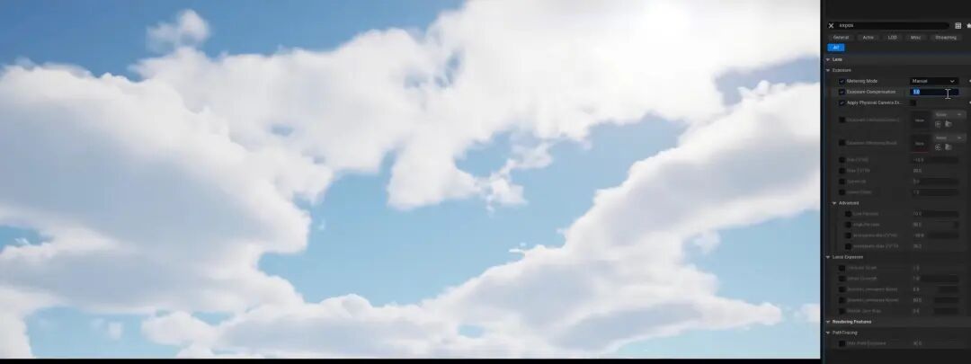 除了曝光增强降低了对比之外,这边的雾气对降低对比也是一个大的因素,这里主要通过提高了天空大气系统里的米氏散射这个参数来实现的。当然,大量的光线散射会形成一个包围型的大光盒,在光质上也降低了对比。