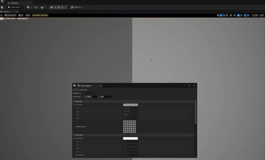 产生这个的主要原因是因为Tonemapping的曲线特性,对亮部和暗部的处理方式不同。比如这里的明暗对比在线性环境下是0.5和1,大家可以通过Scene Color来观察它的数值。