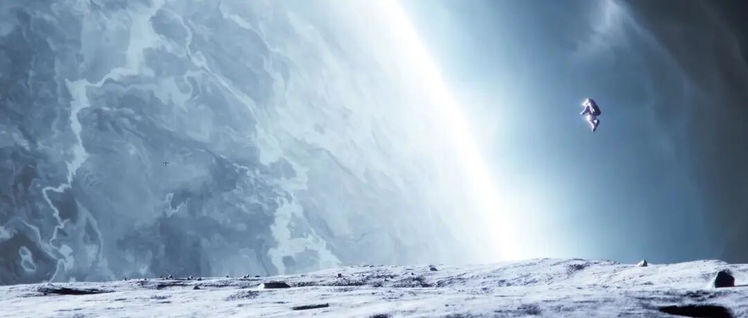 比如说这一幅的高调高对比的尝试,它把一个巨大的光源本身设计为构图的主要元素,放置在背景中,从而产生了高调的主基调,前景有大面积的浅色固有色对象,并且是向光面,高调还来自于过曝以及后期给了比较多的Bloom,也就是光晕的效果。高对比主要是因为太空环境有极弱的环境光,因此暗部比较暗。