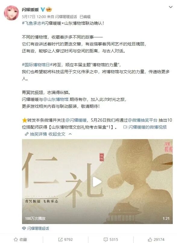 在游戏中,玩家们陪伴着暖暖去开启充满挑战的冒险,在现实中,暖暖也如叠纸的玩家一样,记录着许多温暖美好的瞬间,迈入更多新奇而有意义的领域:暖暖关注着流浪小动物,用自己的方式递出一份温暖;向前探寻的同时,也不断回溯着源远流长的传统文化、以生动活泼的方式分享自己的感受。在每一次联动活动中,暖暖都在积极地与世界发生更多的联结,也在用她独特的方式,诠释着一种不一样的“少女力量”。