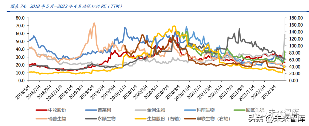 从估值水平看,除生物股份受益于自身α成长性以及龙头属性,保持较强估值溢价外, 其余标的估值水平跟随行情表现有所下修。