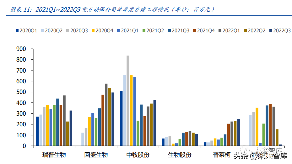 未来毛利率水平仍有提升空间。产能规模效应有望逐步体现:新版 GMP 于 2020 年修订,经历 2022 年至今约 2 年 左右过渡期,为满足新标验收,行业近两年新建产能较多,我们以中牧股份、回盛 生物、科前生物、瑞普生物为例,我们对截止 2021 年年报的重要在建工程变化情 况进行整理,多存在 2021~2022 年竣工投产的较大规模产线项目,因此产能利用 率普遍处于爬坡过程,导致折旧成本压力阶段性上升,随产能利用率提升成本规模 效应逐步体现,且通常新产线智能化生产水平提升可带动生产效率提升。产品结构仍在优化:短期看随下游养殖盈利改善、资金状况优化,高端产品占比快 速提升;中长期看从业人员素质提升、行业规范化程度提升等共同推动优质产品渗 透率提升,倒逼以价格竞争为主的低端产品逐渐退出市场。新产品升级迭代:行业龙头新产品储备丰富,且新兽药通常定价水平高于常规兽药, 有望拉动整体均价与毛利改善。
