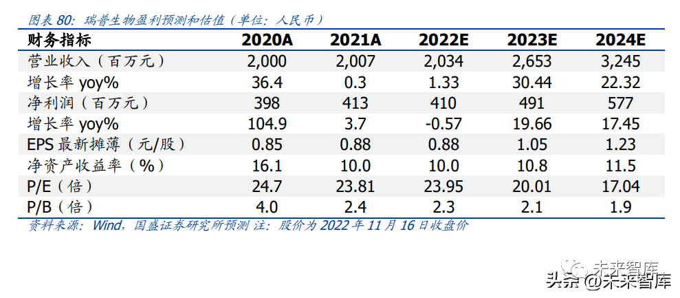 公司为我国非强制免疫兽用生物制品龙头。公司成立于 2001 年,为猪用非强免苗龙头, 2017~2020 年连续在非强免疫猪用生物制品市占率排名第一。收入呈现快速增长趋势, 2021 年公司营收同增 30.8%至 11.03 亿元(其中猪用疫苗营收占比 95.8%),归母净利 润同增 27.5%至 5.71 亿元。盈利能力领先行业,2021 年毛利率/归母净利率 79.8%/50.3%。2022Q1~Q3 受上半年下游养殖行业深度亏损需求疲软影响,导致公司 营收同降 36.5%至 2.03 亿元,归母净利润同降 46.3%至 9077 万元。
