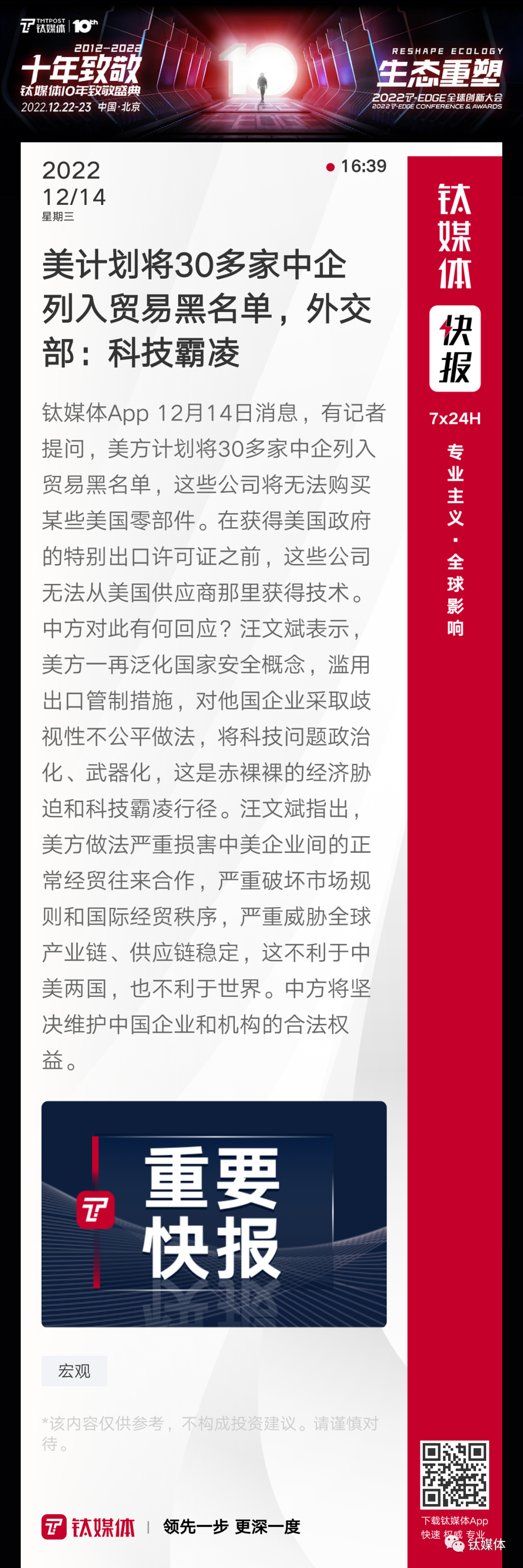 【美计划将30多家中企列入贸易黑名单,外交部:科技霸凌】