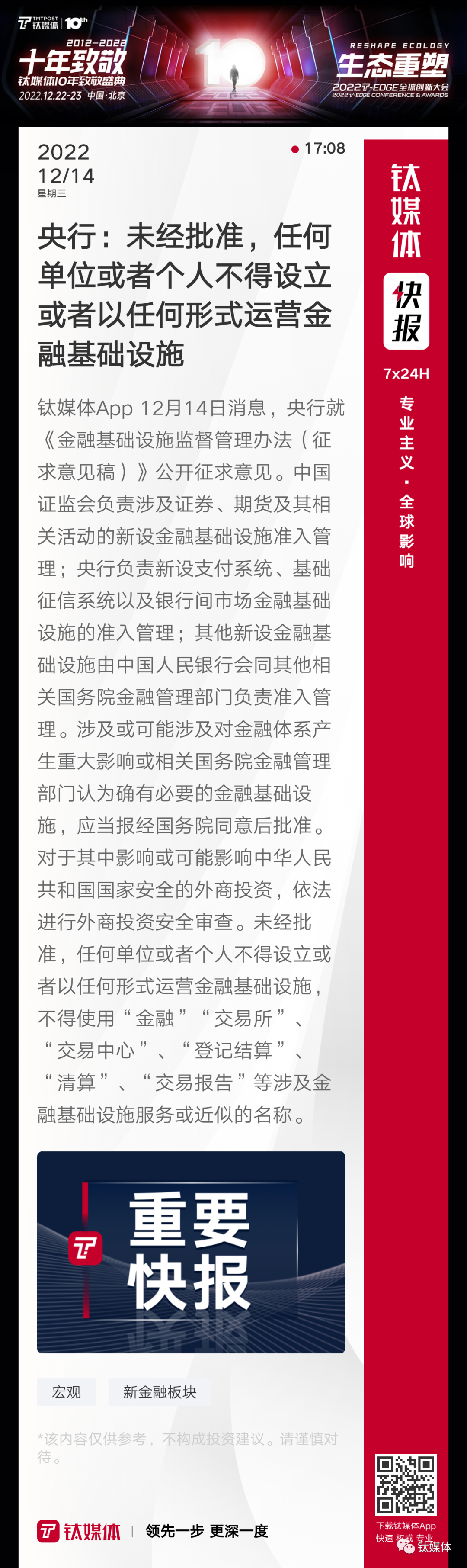 【央行:未经批准,任何单位或者个人不得设立或者以任何形式运营金融基础设施】
