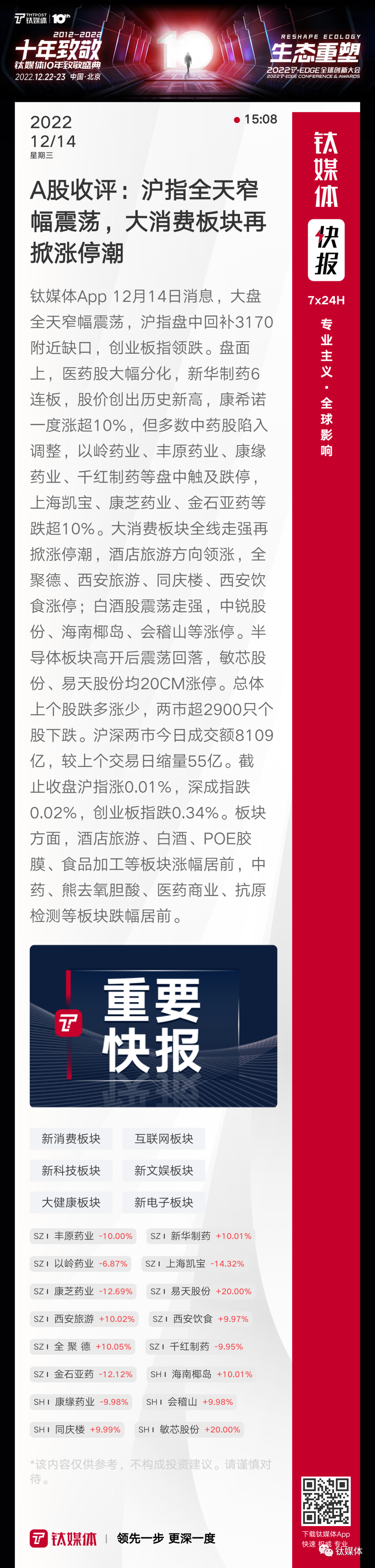【A股收评:沪指全天窄幅震荡,大消费板块再掀涨停潮】
