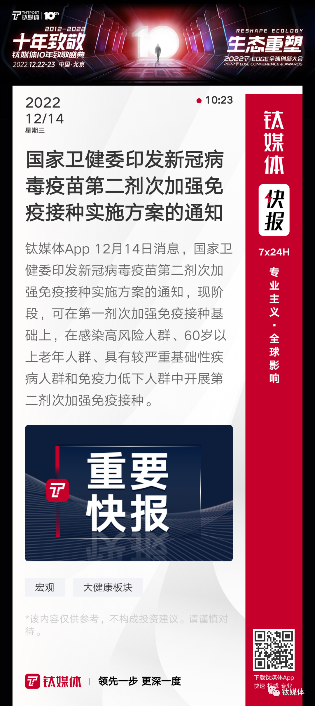 【国家卫健委印发新冠病毒疫苗第二剂次加强免疫接种实施方案的通知】