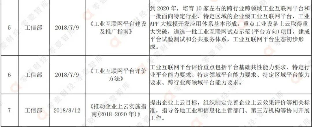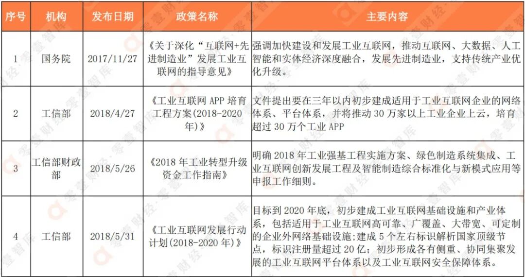 表1:国家层面工业互联网产业政策汇总(展示部分)