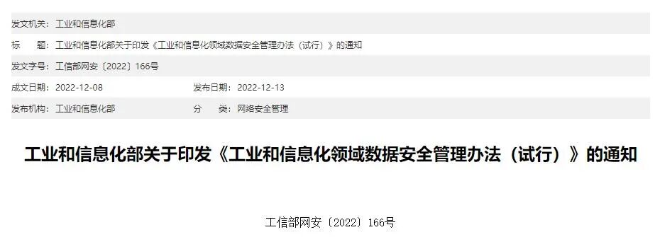 近日,工业和信息化部印发了《工业和信息化领域数据安全管理办法》(以下简称管理办法),并就相关问题做了回应和解读。《管理办法》将于2023年1月1日起施行。