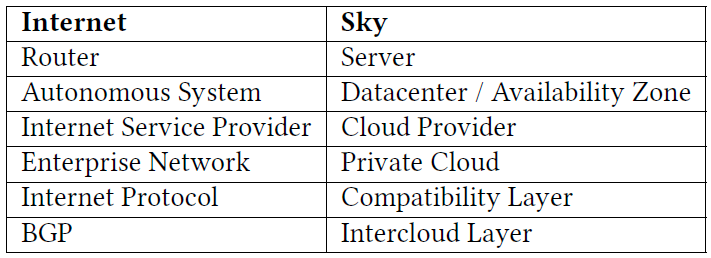 Sky Computing 与互联网对比