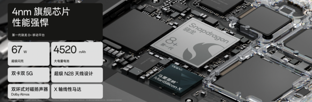 采用全新超轻固精工拟椎式铰链,引入航天级超韧合金、复合碳纤维材料,铰链体积减少37%,重量减轻36%,强度提升33%。采用复合碳纤维材料作为屏幕支撑骨架,屏显结构较上代减轻34%。手机内的64颗螺丝钉升级到钛合金,重量达到233g。Find N2是首个通过莱茵折叠无忧认证2022的横向折叠手机。在经历40万次极限弯折测试后,屏幕性能、铰链、功能仍然保持良好水平。Find N2 整机厚度比上一代减少1.3毫米,边框缩窄47%,提供云白、松绿、素黑三款配色可选,云白和松绿采用亲肤玻璃材质,素黑配色采用素皮材质。内外均采用E6材质屏幕,支持120Hz刷新率,行业首次实现双屏环境色自适应显示。搭载高通骁龙8+芯片,内置4520mAh电池,支持67W超级闪充。OPPO Find N2推出悬停空间功能,只需弯折即可开启悬停空间,并带来视频、音乐、相机、运动等细分服务。OPPO联合头部应用,针对Find N2深度定制专属大屏体验。面向目前缺乏定向适配的传统应用,Find N2也能通过自适应UI实现传统应用和大屏的自动适配。Find N2新增多页面分屏、跨屏分享、分屏截图功能,支持AI会议转写、图文智能识别等软件功能。全新的OPPO Pen可以让用户在商务场景中,快速进行图文叠写、快速截图、遥控拍照。搭载OPPO自研的手写引擎,支持最高4096级压感,连续书写续航可达11小时。Find N2采用5000万IMX890主摄,还拥有4800万超广角镜头、3200万人像镜头。结合自研RAW域无损计算、马里亚纳MariSilicon X、哈苏联合深度调试。