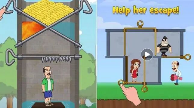 而在当年4月1日,Playrix又如法炮制,为其另一款明星产品《梦幻花园》发布了类似的拔签子广告,只不过这次是要帮助主人公逃脱熔岩、恶犬、钉板等威胁,成功抢到金币。而在视频开始时,底部同样有“并非所有图像都代表实际游戏玩法”的文字提示,同时在视频结尾还出现了“只有5%的人可以解决这个问题”的标语。