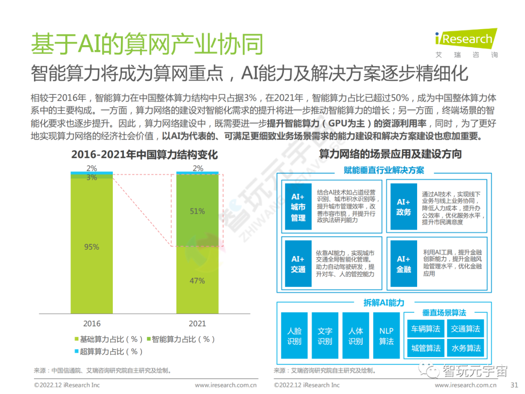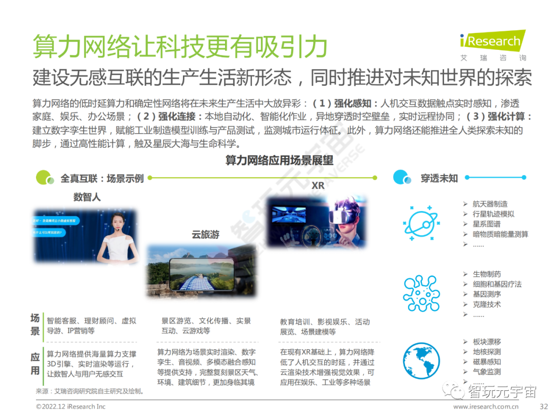 随着算力网络建设推进,建设重心逐渐从基础资源建设向场景化应用倾斜。随着AI能力及解决方案精细化,智能算力将成为未来重点发展方向。同时,算力网络的应用赋予终端了场景无限算力与确定性网络,会进一步推动业务场景创新与科研探索。![]()