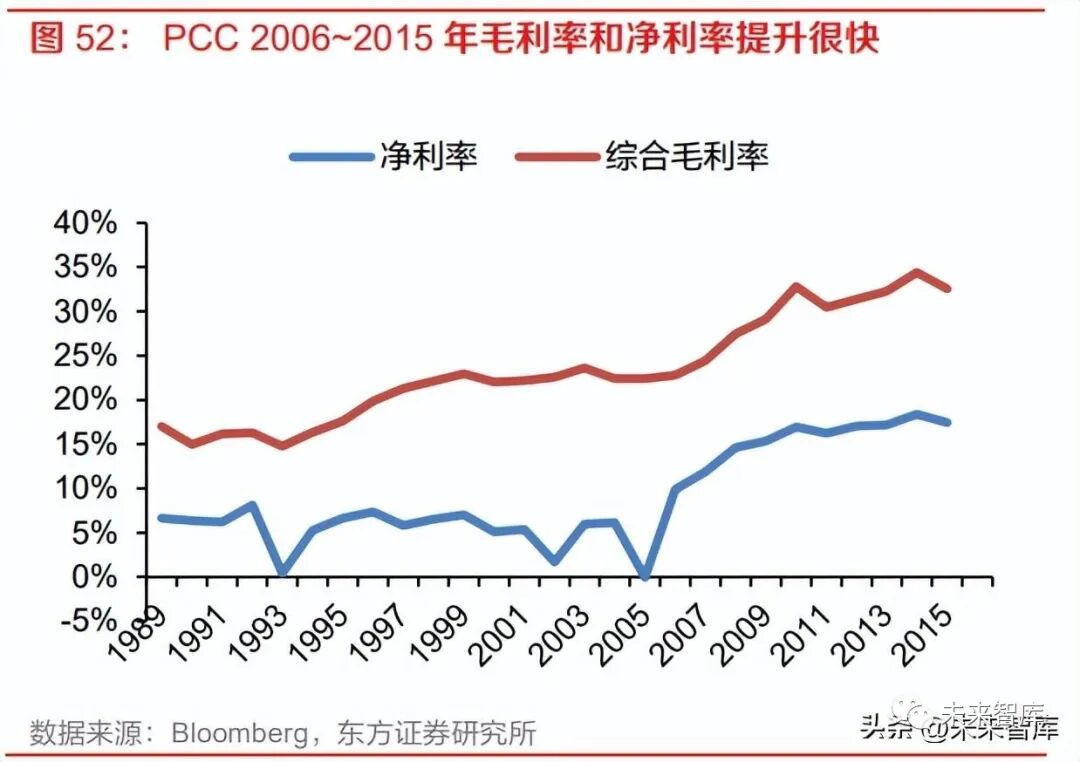 PCC 为全球航空航天铸造市场龙头。2018 年全球精密铸造业务产值排名第一为美国的 Arconic 公 司,其 18 年相关业务营收为 140 亿美元,PCC 排名第二,18 年营收为 118 亿美元。按 PCC 并 购前业务结构测算,其熔模铸造产值约为 30 亿美元,其中面向航空航天领域 19 亿美元,市占率 达到 34%,位居全球第一,面向燃气轮机领域 9 亿美元,市占率达 30%。可见,在航空航天及两 机精密铸造领域,PCC 是目前行业当之无愧的龙头。PCC 2006~2015年毛利率和净利率提升快。PCC于1989年在纽交所上市,1989~2015年,PCC 公司营收从 4.43 亿美元增长到 100.05 亿美元,复合增长 13%,净利润从 2940 万美元增长到 17.45 亿美元,年复合增长 17%。2006~2015 年,PCC 公司的毛利率和净利率开始较快提升,毛 利率从 22%左右提升到 31.5%~34.5%,净利率从 10%提升到 17%~18%。2016 年 PCC 被伯克 希尔·哈撒韦(Berkshire Hathaway)公司以约 372 亿美元的价格收购。