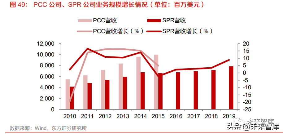 外协规模的增长催生了若干家千亿市值的专业化航空零部件加工企业。从美国航空业发展情况来 看,不少外部协作公司已拥有了庞大的规模与市值,如零部件加工领域的 SPR,前身为 2005 年 从波音公司独立出来的威奇托工厂,在 2010—2019 年取得了 10%以上的营收复合增长率(2019 年营收高达 78.6 亿美元);航空锻铸领域巨头 PCC(精密铸件公司)在 2006—2015 年取得了 13%的营收复合增长率,并于 2016 年被巴菲特以 372 亿美元的价格私有化。
