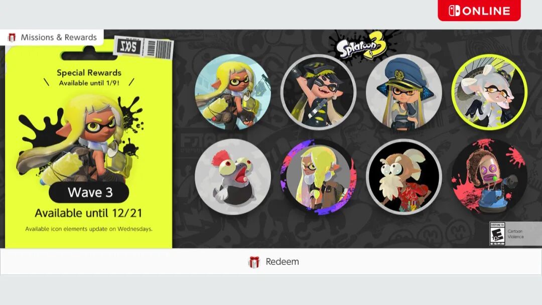 任天堂推出《斯普拉遁3》第三波白金点数兑换头像,12月21日截止。点击桌面的“Nintendo Switch Online”图标即可前往兑换(需要会员)。