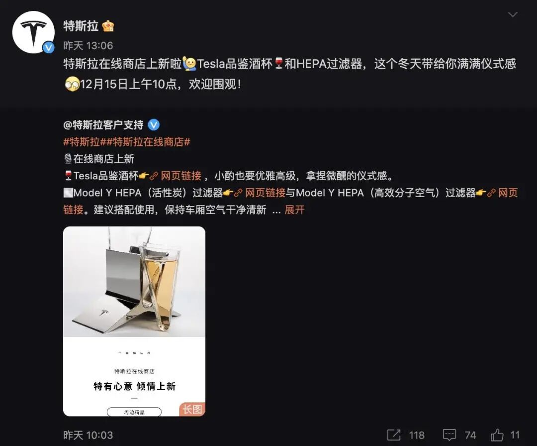 视频当中描述「我们的工程师在各种恶劣条件下对 Semi 进行了测试,以最大限度地提高可靠性和耐用性」。Tesla Semi 在五年前就已面世,原本在三年前投产,但最近第一批车才交付给百事可乐。特斯拉 Semi 董车君不太感兴趣,但我更好奇多次延期的 Cybertruck 什么时候才交付?换代蔚来 ES8 亮相工信部,12 月 24 日发布在工信部上面,已经出现蔚来换代 ES8 的真车图,这是 866 车型全面过渡到 NT2.0 平台的第一步。从外观来看,换代 ES8 融入了上代车型与现阶段 NT2.0 平台车型的一些元素,拥有家族风格的 X-Bar 前脸,最明显的改变是加入激光雷达,以及两侧高清摄像头的犄角。尺寸方面为 5099x1989x1750mm,轴距 3070mm,车长与轴距都相较上代车型增加,但取消七座,只保留六座版本。电池提供 75kW 与 100kw 两种版本,但供应商与上代车型不一样,拥有宁德时代和中创新航两种搭配。ES8 是蔚来在 2018 年发布的第一款车型,在早期对拔高蔚来品牌起到重要作用,也累积了蔚来最原始的忠实粉丝,而近段时间车市物语引述蔚来内部人士透露,之后蔚来还有定位对比迈巴赫 S 级的车型。无可否认,蔚来是为数不多成功树立高端标签的中国汽车品牌,这点很难得。而很多对外宣称定位豪华车的品牌只是烧钱,高价投放大量广告与请代言人,但未烧出效果。12 月 15 日,岚图追光正式亮相,这是旗下首款轿车。其中标准版搭载 82kW 电池包,预售价 32.29 万元 ;旗舰版搭载 82kW 电池,预售价 35.29 万元;长续航旗舰版搭载 109 kW 电池,预售价 43.29 万元。车身尺寸为 5088x1970x1505mm,轴距 3000mm,采用前双叉臂+后五连杆独立悬架,配备 CDC 电磁悬架。追光配备双电机四驱系统,前电机峰值功率为 160kW,后电机峰值功率 215kW,官方零百公里加速时间 3.8s,制动距离 33.83m。此外,岚图追光搭载自研的高速自主领航驾驶系统,可以实现高速公路、城市快速路场景点到点的智能辅助驾驶,并全系标配 AR-HUD。新君越出现在工信部的车型目录当中,照片显新车的外观相对于现款改变较大。细长的车灯与近段时间不少新势力的电动车相似,而宽大的进气格栅让我想起了亚洲龙的造型。车身尺寸为 4996x1866x1472mm,轴距 2905mm,属于标准的中大型车,但长度相对于现款 5026mm 的车身缩短。资料显示新车搭载 2.0T 涡轮增压发动机,峰值功率 169kw,WLTC 工况油耗 6.59L。买这台车的人应该会对比比亚迪汉吧?后者正成为同级的爆款,而新君越的外观正成为话题。国产马自达 CX-50 发布,2.5T 动力未引入12 月 15 日,长安马自达 CX-50 正式发布,这是一款基于前驱横置平台的紧凑型 SUV。CX-50 拥有家族化的前脸,车灯造型相对上代更为细长,侧面造型饱满。车身尺寸为 4785/1920/1638mm,轴距 2815mm。官方资料显示,国产车型的后排空间增加 55mm。值得一提的是,仪表盘采用了液晶+机械式组合,而不是目前逐渐流行的全液晶仪表盘。不知道马自达的这种「固执」,用户是否买单。另外,这次 CX-50 也有全景天窗,在之前的车型比较罕见。动力组合上面,前期推出 2.0L、2.5L 版,搭配 6AT 变速箱,而 2.5L 发动机集成智能变缸技术,后续还会引入油电混动版,但海外车型的 2.5T 未引进。根据 motor1 报道,在上个月洛杉矶车展之后,2023 款普锐斯终于公布价格,其中 LE 车型约人民币 19.1 万元,四驱版约人民币 20.1 万元,而 XLE 车型约人民币 21.5 万元,四驱版约人民币 22.5 万元。2023 款普锐斯标配 Toyota Safety Sense 3.0,支持带行人检测功能的预碰撞系统、带转向辅助的车道偏离警报、全速范围动态雷达巡航控制、车道追踪辅助、道路标志辅助、自动远光灯和主动驾驶辅助。相信这些功能,下一代国产的凯美瑞也会搭载。目前普锐斯已经在国内停止销售一段时间,早期是国内为数不多的混合动力车型,但价格几乎是同级车型的两倍。目前日系车的份额被国产品牌侵占,相信普锐斯也不会引进国内销售。但是从产品的角度来看,这台车仍然有不少设计值得不少国产混动车型学习。近段时间,新一代的国产宝马 X1 在工信部申报。资料显示提供 1.5T 与 2.0T 两种版本,对应 20Li 车型和 25Li 车型,最大功率分别为 115kW 和 150kW,相对于上代有提升。除此之外,国产宝马 X1 最大的优势「空间」在新一代车型上面进一步放大。新车的尺寸为 4616x1845x1641mm,轴距 2802mm,相比上代车型轴距加长 22mm。一直以来,自从国产版宝马 X1 轴距加长之后,空间从来没有让人失望,但是操控体验上面,就缺失一些宝马的味道。梅赛德斯奔驰公布一项超过 10 亿欧元的计划,从 2024 年开始调整全球电动动力系统生产网络,包括电池组装、电驱动装置和车桥。资料显示,奔驰德国 Kamenz、Untertuerkheim 和北京工厂组装电池,用在即将推出的 MMA、MB.EA 平台车型。德国 Untertuerkheim、北京和罗马尼亚 Sebes 工厂还将生产电驱动系统,而奔驰德国汉堡、Untertuerkheim 是组装电动车桥和部件的主要工厂。上述计划,都是为奔驰 2030 年实现全面电动化努力。等到 2030 年,买奔驰电动车应该不会被新势力车主笑了吧?特斯拉官方微博显示,在线商店上新,包括 Tesla 品鉴酒杯、Model Y HEPA(活性炭)过滤器、Model Y HEPA(高效分子空气)过滤器,价格分别为 490 元、198 元、398 元,开售时间在 12 月 15 日上午 10 点。如果说过滤器还算比较实用的话,那么这个杯子的价格似乎贵一些。目前不少车企都有做生活周边,比较出名的有蔚来 NIO Life,欢迎在评论区分享一下大家买过什么车企的非汽车