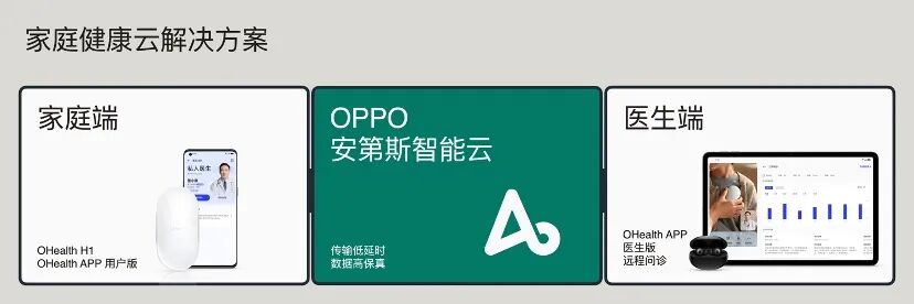 基于OPPO的安第斯智能云,OHealth APP用端和医生端之间的数据实现互通。