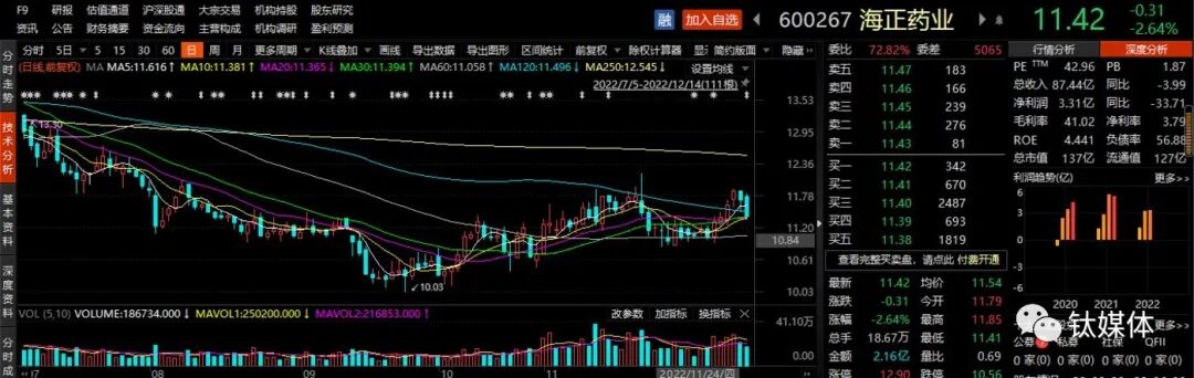 除此之外,海正药业的“新冠特效药”看似前景甚好,实则进展缓慢。在众多不确定下,12月7日,海正药业还发布了大股东减持套现的公告。