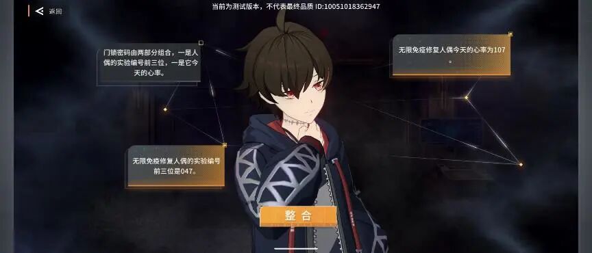 在搜集证物到了一定程度时,角色可以进行【整合】,即对得出的结论进行两两组合,在选择成功的情况下才会进入剧情的下一幕。